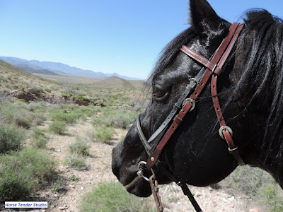 At one point during our time there, I decided to take him out for a ride in the desert. We had done a lot of desert riding during our years in the same desert, the Mohave, only a few hours west of here. When Bo was 2 years old, he was shipped from South Dakota, where he was born, to southern California. We spent the next several years there. That's where he was started under saddle and where we did a LOT of riding. However, this was our first time out and about in the desert in around 7 years.